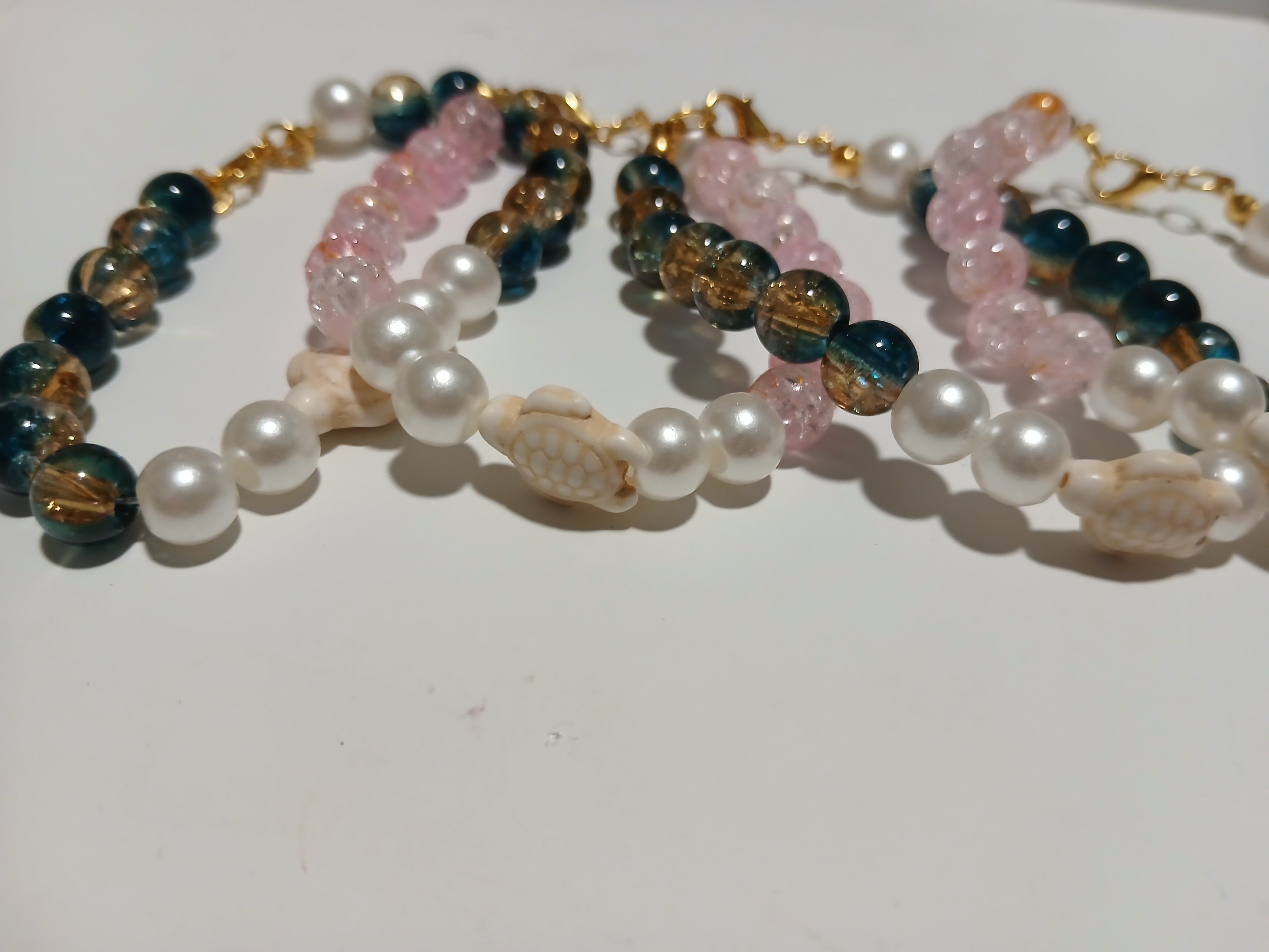 Ocean Dreams Sea Turtle Bracelet - Handmade Pearl & Glass Bead Jewelry